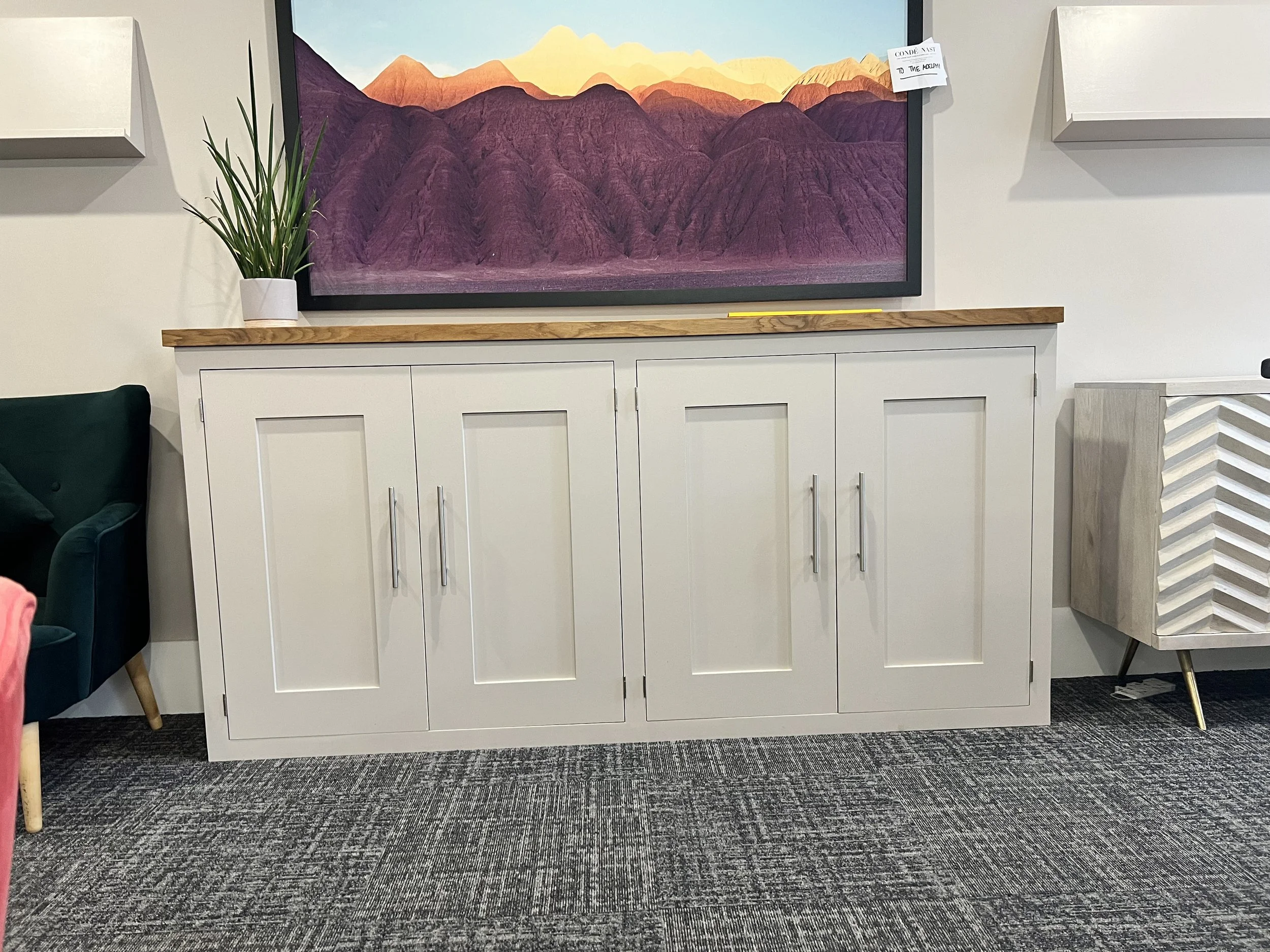A selection of bespoke statement pieces created for Simon Leadsford, Publisher of Condé Nast Traveller. This commission included a clean-lined storage cabinet with a solid oak top, and a striking desk built from characterful reclaimed oak boards. Each piece balances practicality with distinctive design, crafted to bring warmth and individuality into a professional workspace.