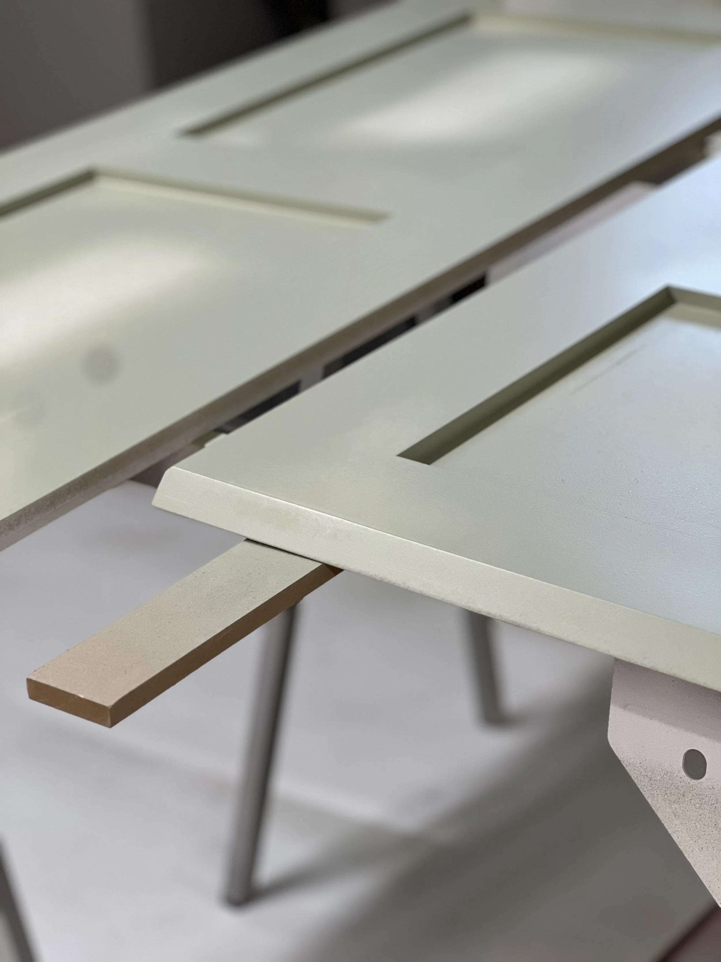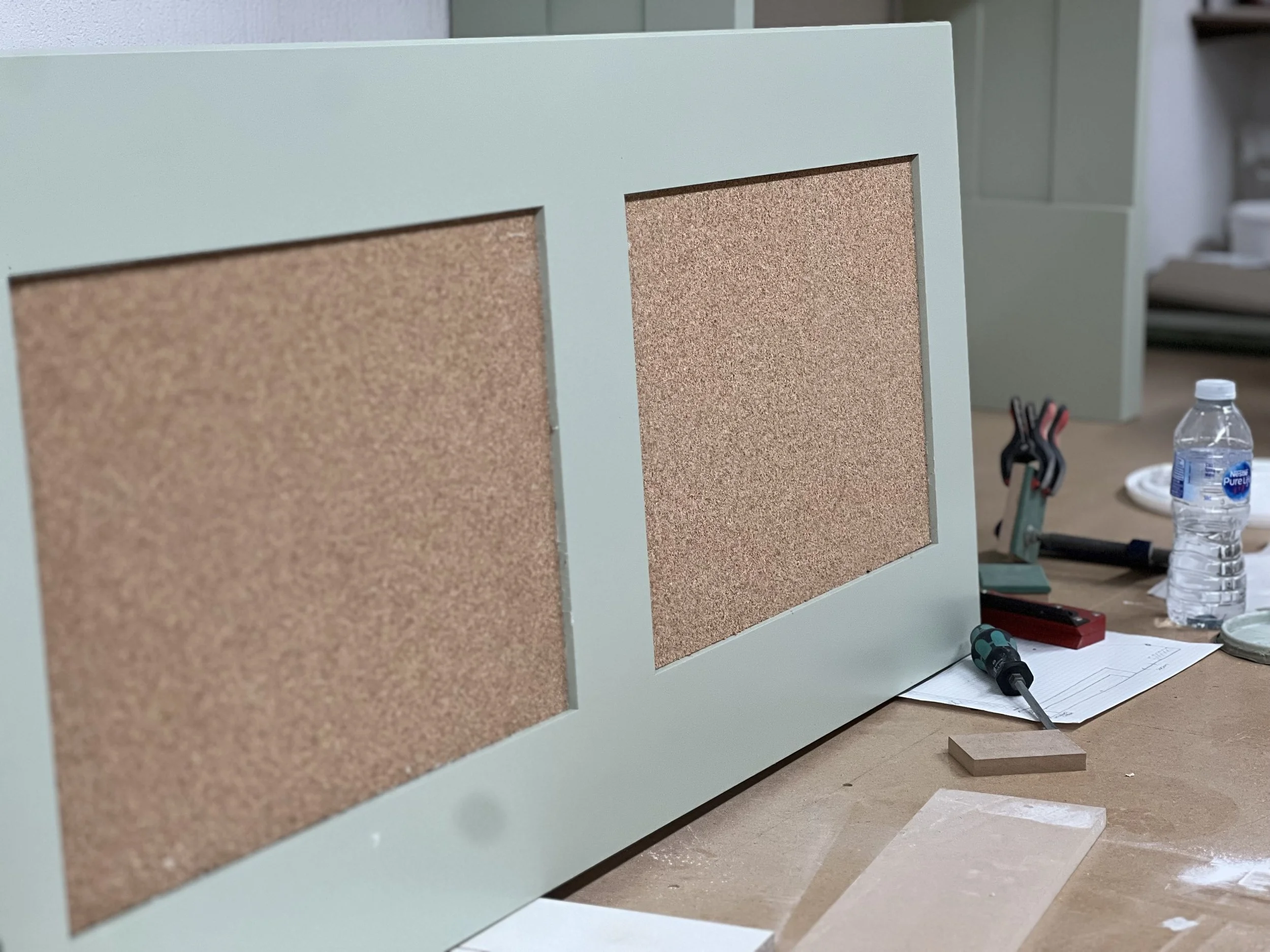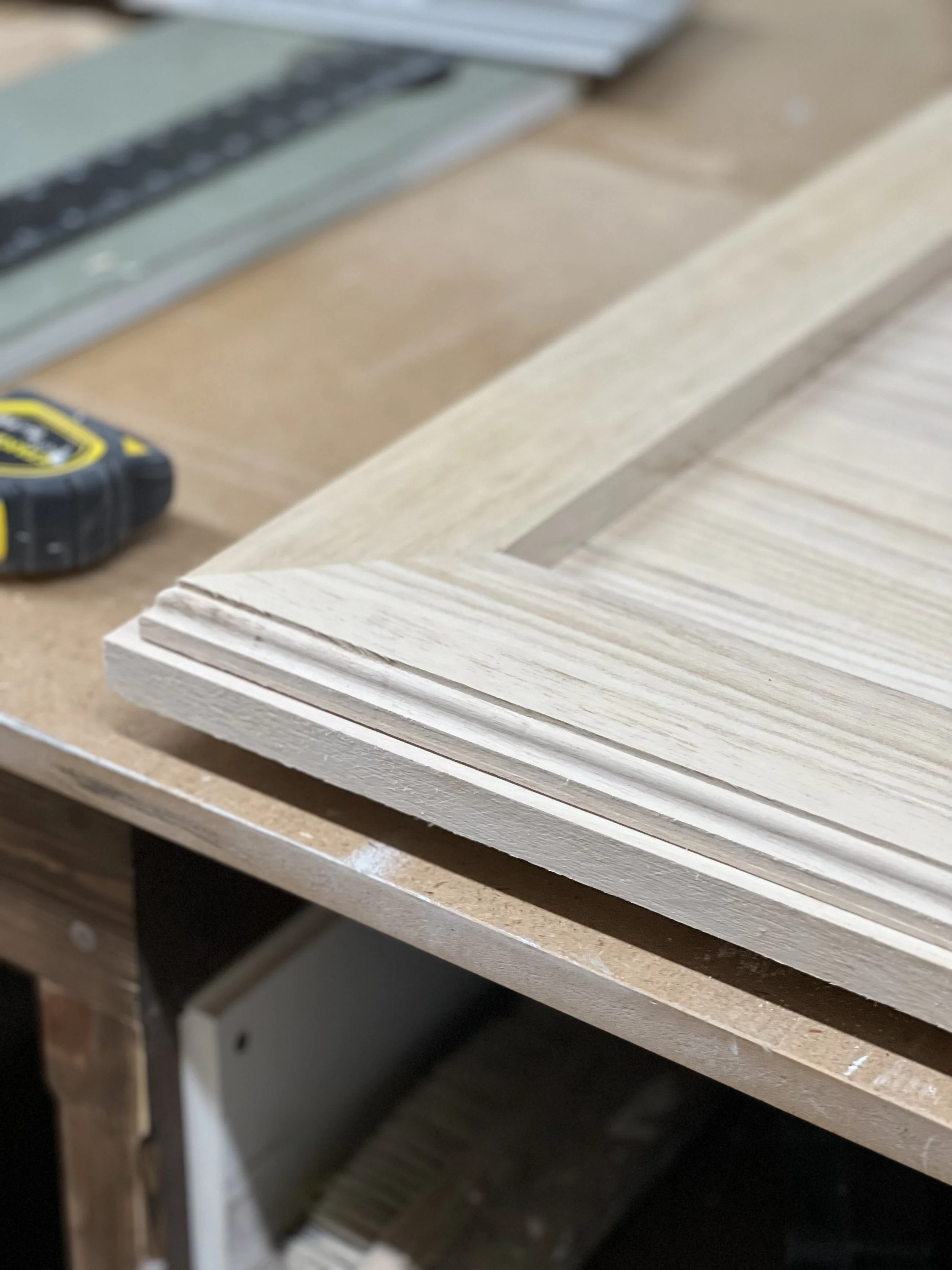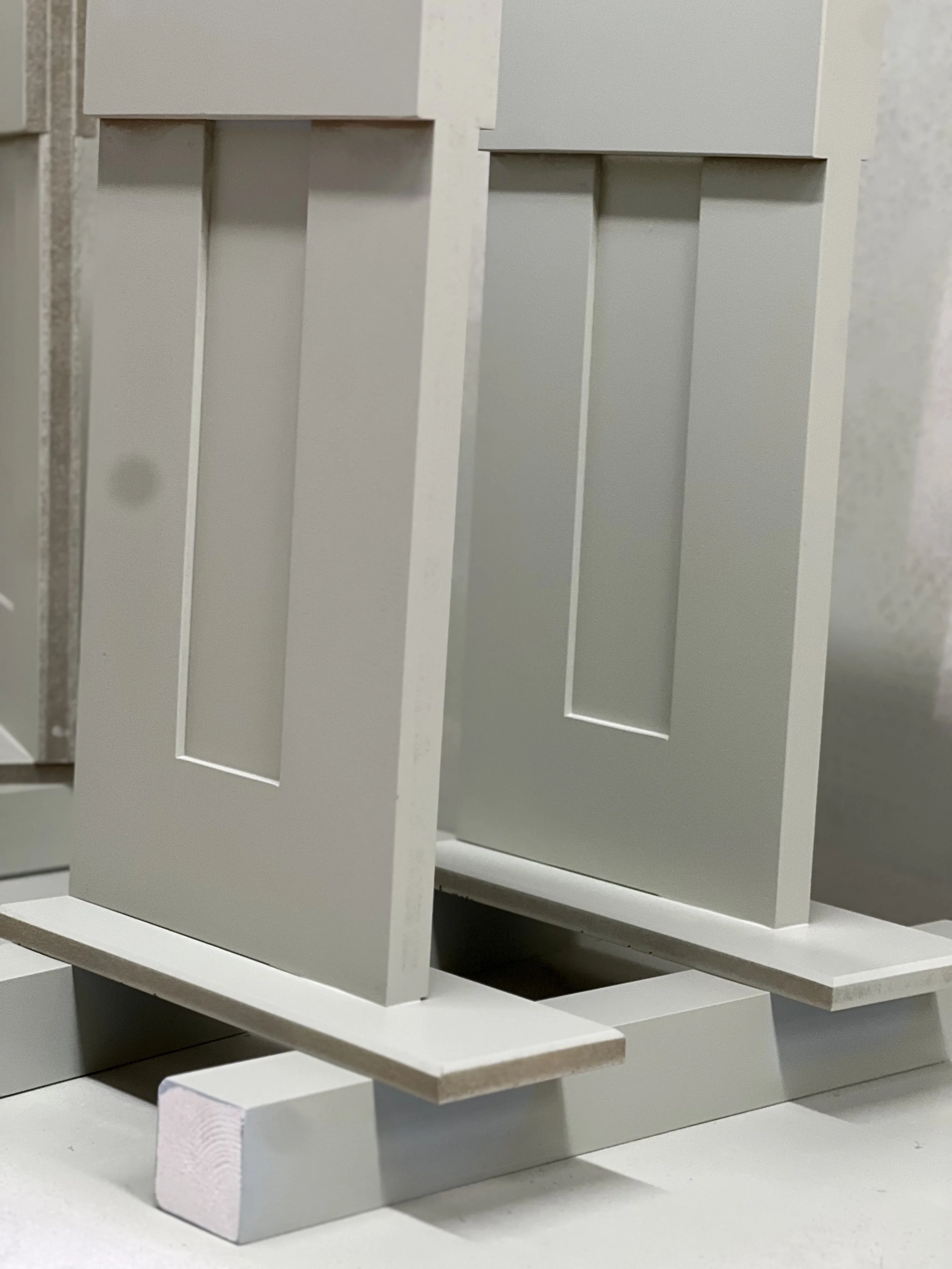 This complete home office was designed and built for a client in Twickenham, featuring a solid oak desktop finished to highlight the natural grain. The cabinetry is painted in Farrow & Ball’s Mizzle, creating a soft contrast with the oak. With integrated storage and hidden compartments for wires and internet services, the design combines elegance with practicality, delivering a clean and organised workspace.