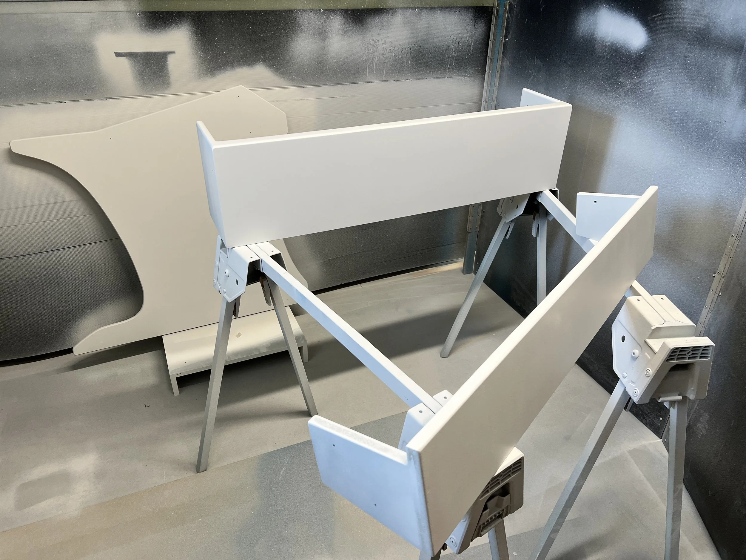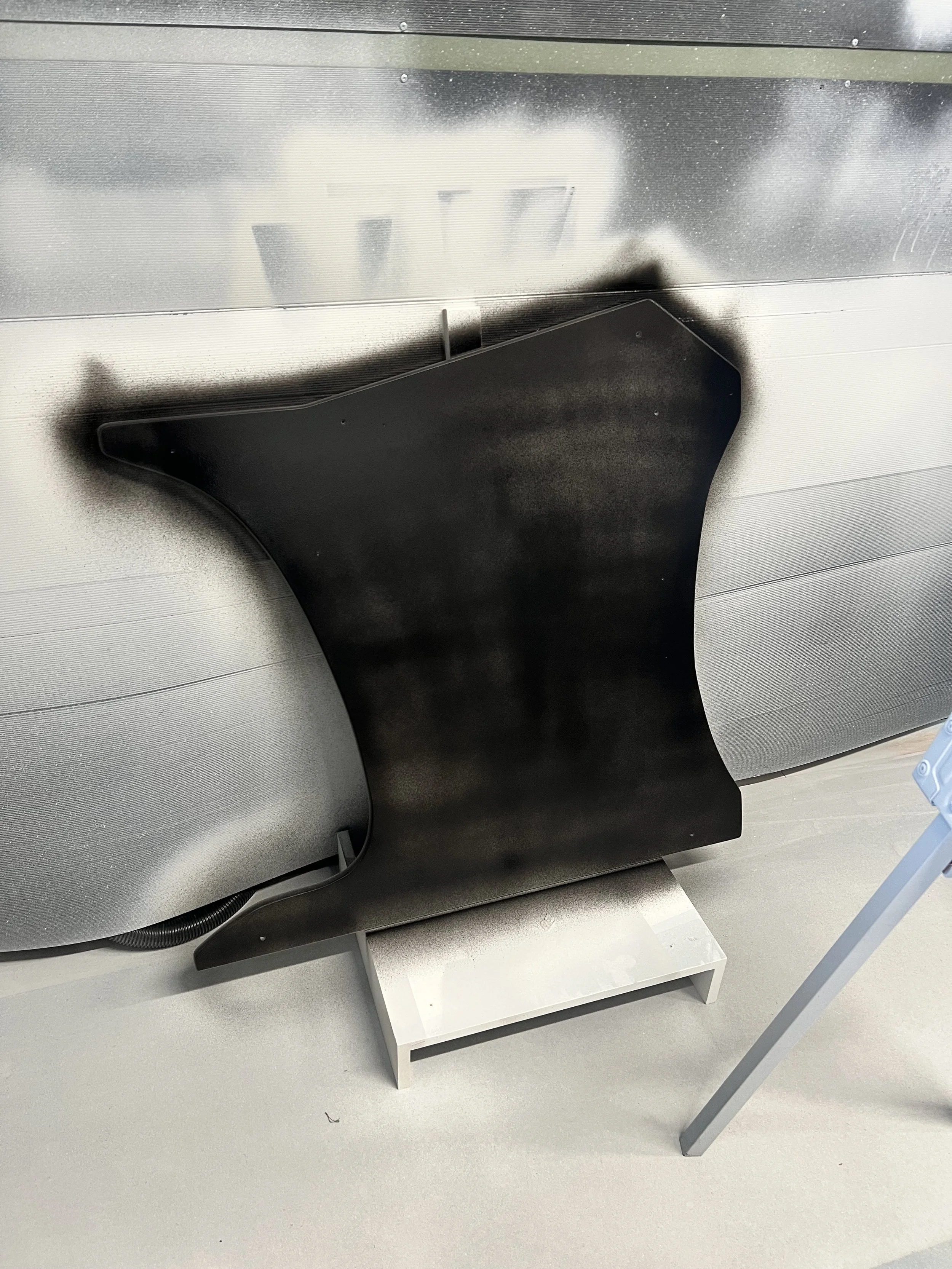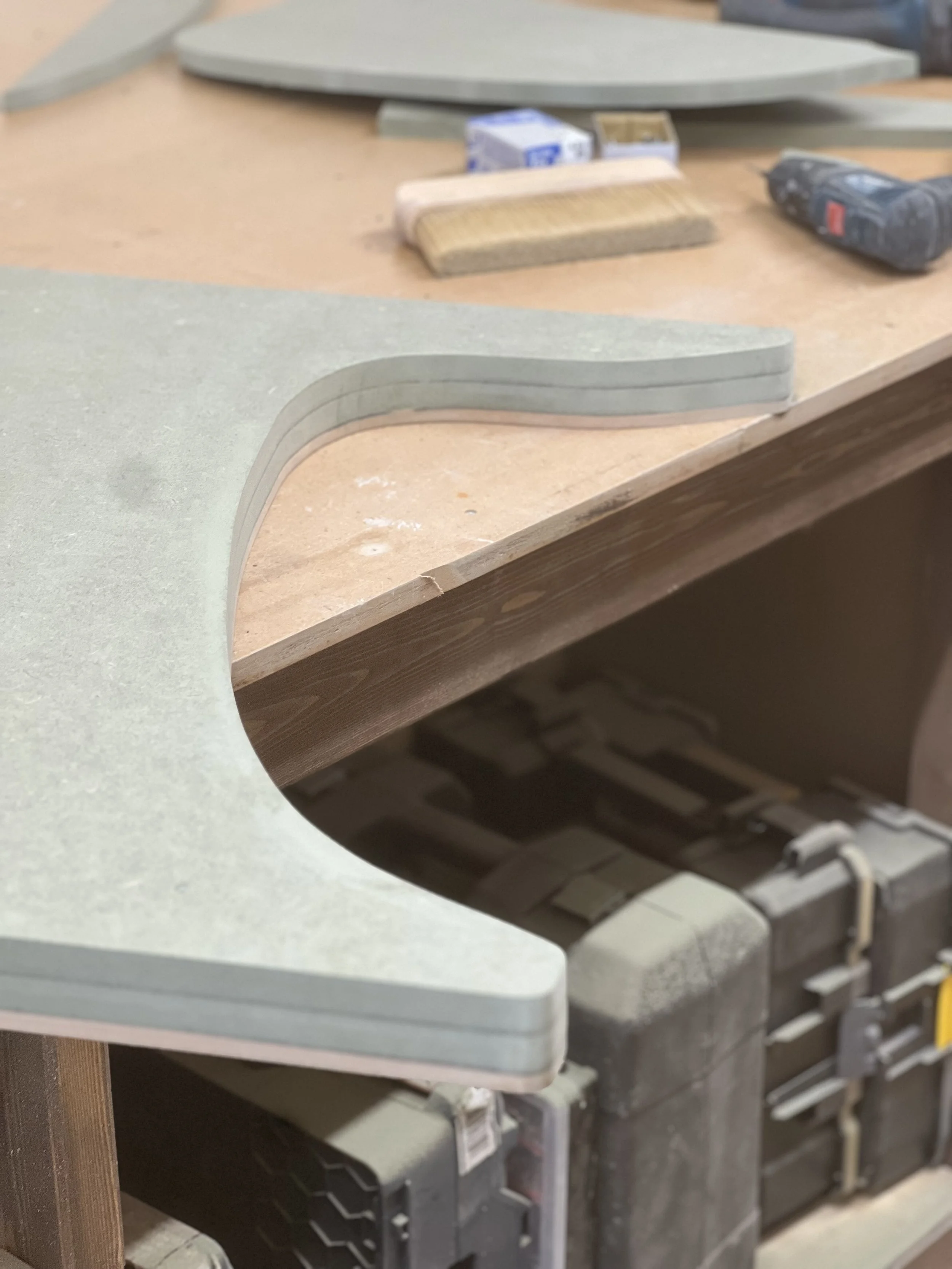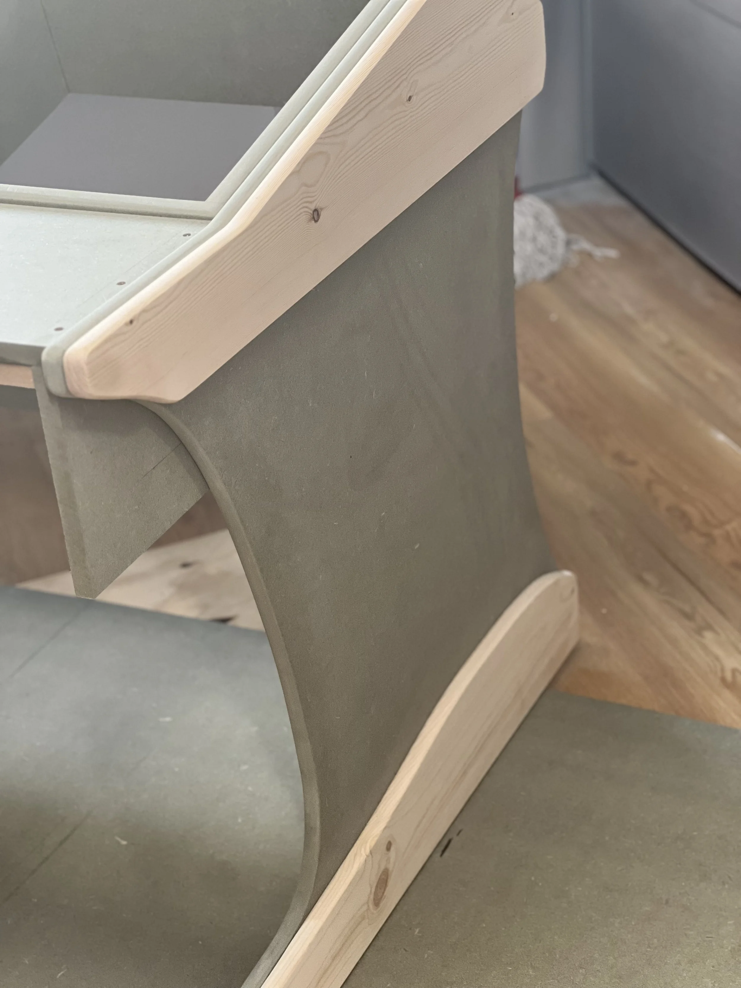 This custom-built mixing desk was designed to meet a client’s exact studio requirements. Constructed with a sleek black finish and contrasted with stained timber details, it features integrated compartments and a pull-out keyboard shelf. Built for both style and practicality, the desk creates a professional workspace tailored for music production.